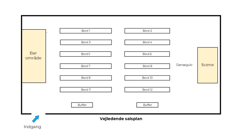 DGI Huset laver bordplan, som kan ses ved indgangen til salen på aftenen.