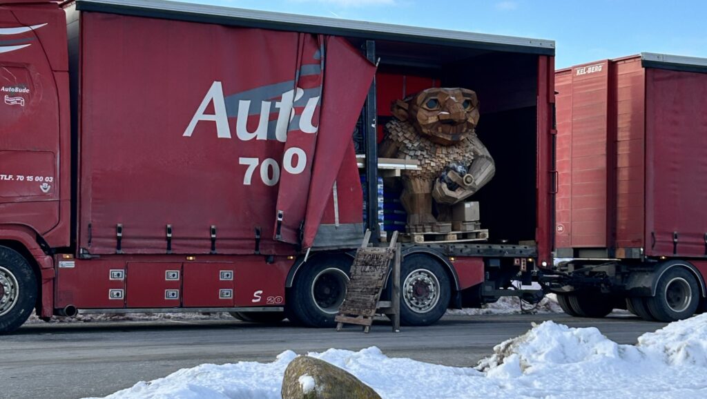 Fra 18. februar til og med 3. maj har vi besøg af Lomme Ulrik. Han er en over to meter høj og 500 kilo tung trold lavet af genbrugstræ, som er på jagt efter lommeuld fra besøgende.
